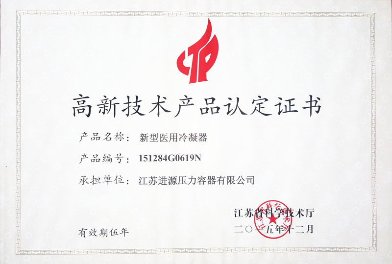 高新技術(shù)產(chǎn)品認定證書-新型醫(yī)用冷凝器